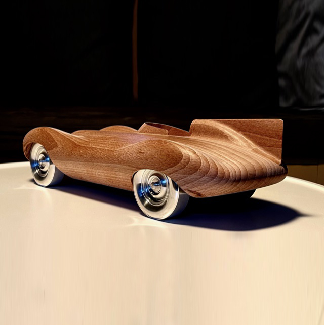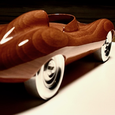 Inspiration Jaguar Type-D. Hêtre massif verni, roues aluminium “Full metal"