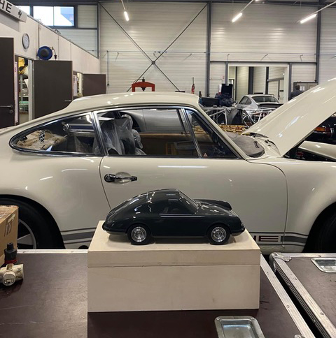 Inspiration Porsche 911. Hêtre massif peint, Slate grey, jantes aluminium “Tôle".