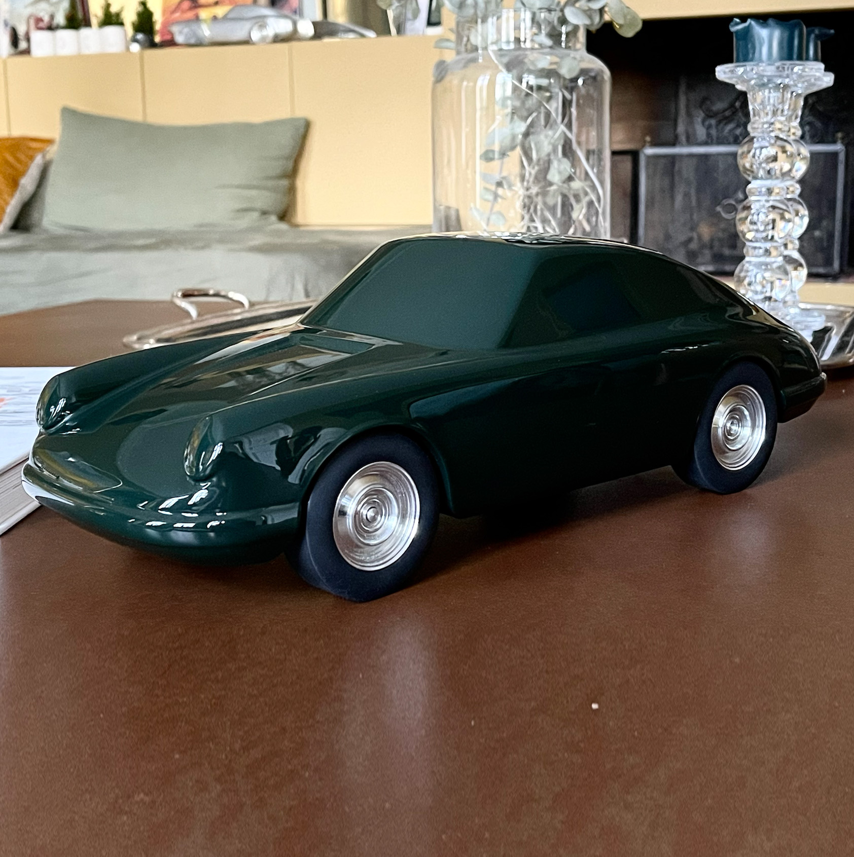 Inspiration Porsche 911. Hêtre massif peint, British racing green, jantes aluminium “Tôle".